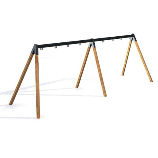 Gungställning tillverkat i trä med plats för två fritt valbara gungsäten. Visst minns du det pirrande suget i magen när gungan fått upp farten. Och minns hur stolt du var första gången du lyckades sätta fart själv. Att gunga är paradexemplet på en lek där sinnesupplevelse är direkt förbunden med motorisk färdighet. Inte så konstigt att gungställningen ofta blir en samlingspunkt på en lekplats. En gunga är en spännande utmaning även för lite äldre barn.
