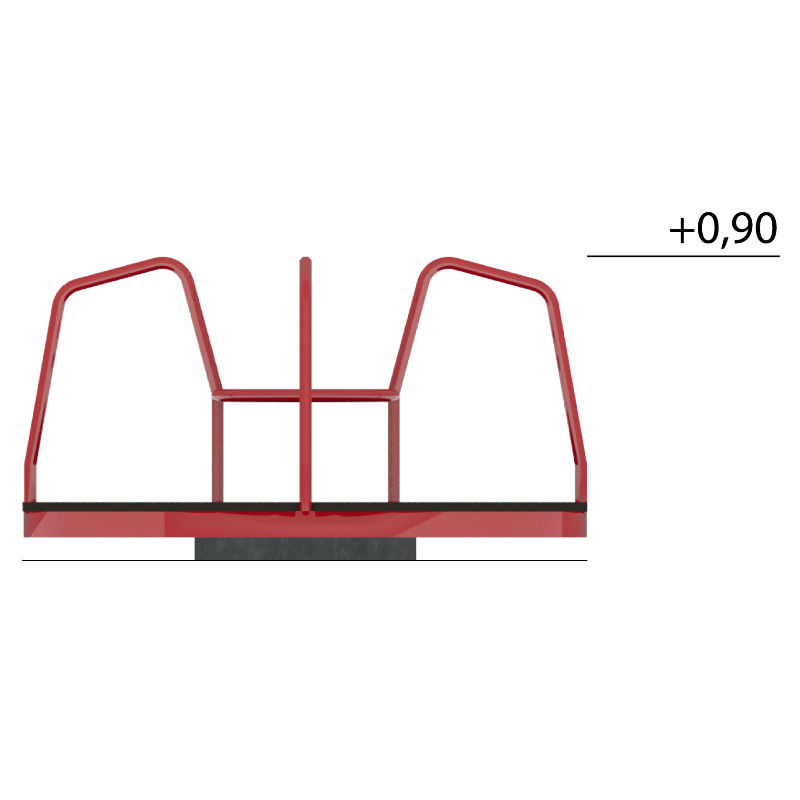 Material: Handtag av elförzinkade, primer och pulverlackerade stålrör. Golvet av 21 mm extra slitstark och väderbeständig fenolfilmbelagd plywood. Sits av 12 mm HPL.
