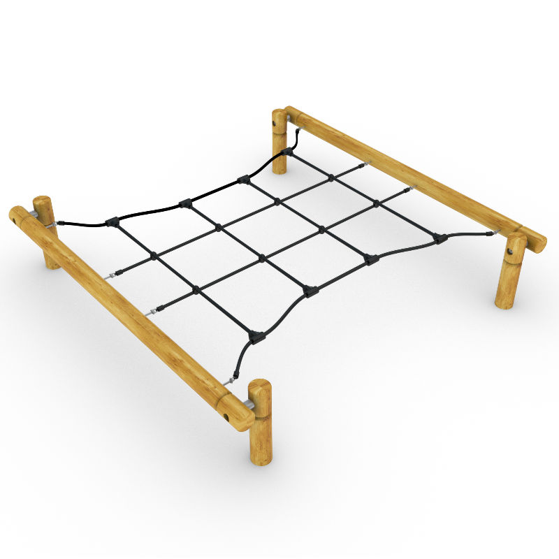 Horisontela klätternätet tillåter barn att träna motorik och styrka samtidigt som de transporterar sig mellan utrustningar på ett roligt sätt. Tillverkat i robust träslag (Robina) med organiskt utseende. Klätternätet kan stå själv eller i en bana.