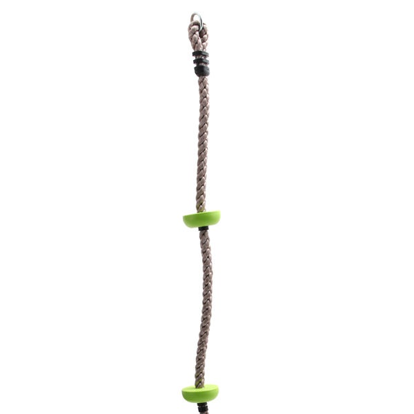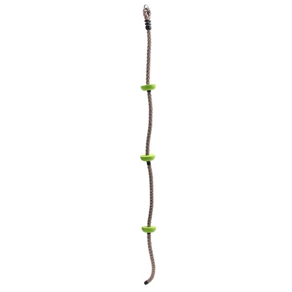 Ett 2 m långt klätterrep med limefärgade diskar att klättra på. Upphängningsringarna är i kraftig metall och diskarna har god UV-beständighet.