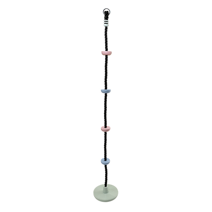 Ett klätterrep som är 2 m långt med ljusblå och ljusrosa diskar och en stabil ljusgrön tallrik, du kan klättra, stå och sitta på en och samma produkt.