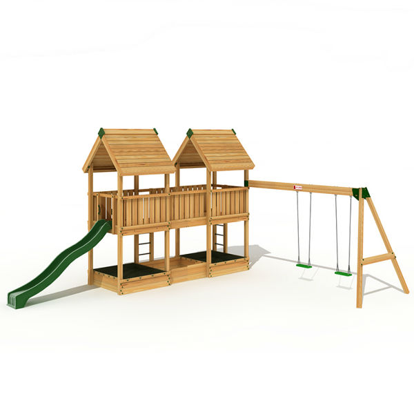 Klätterställning Projekt 4 består av 2 torn försedda med tak samt en klättervägg, en sandlåda, stege och en rutschkana samt gungställning. Komponenterna och tillbehören i Projekt 4 möter de högsta standarder och testas regelbundet för styrka och hållbarhet. Projekt 4 är givetvis väderbeständiga och galvaniserade. Utrustningen kräver minimalt underhåll och är enkla att montera. Träet består av NTR-A impregnerad furu, som garanterar lång hållbarhet och levereras i avskurna dimensioner redo att montera.