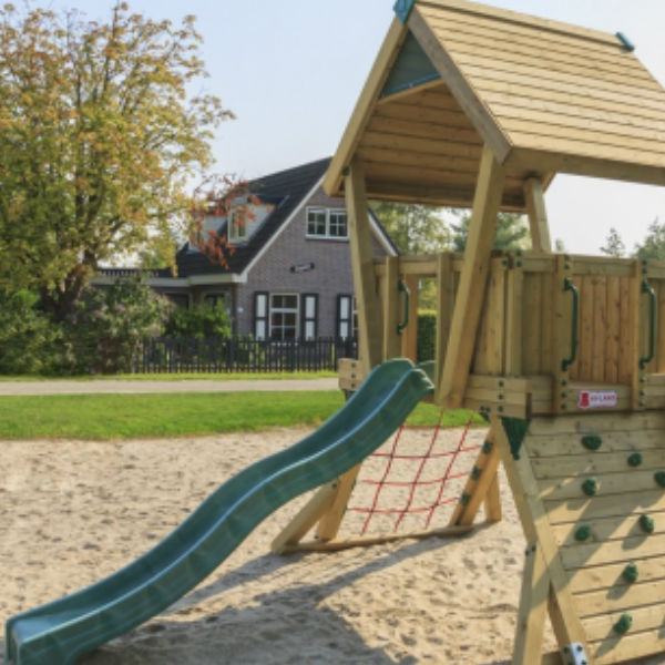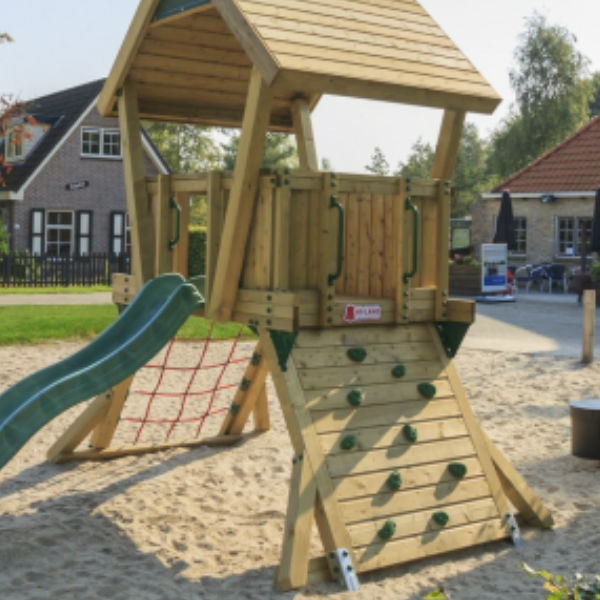 Projekt Q2 består av ett torn med trätak, klättervägg, klätternät och rutschkana. Denna klätterställning är ett mycket prisvärt alternativ som smälter in i de flesta miljöer tack vare sitt neutrala utseende. Utrustningen kräver minimalt underhåll och är enkla att montera. Träet består av NTR-A impregnerad furu, som garanterar lång hållbarhet och levereras i avskurna dimensioner redo att montera.
