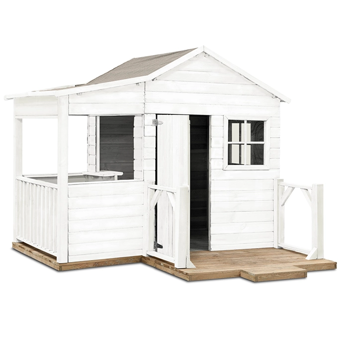 Lekstuga Lara 4,5 är en härlig stuga i tryckimpregnerat trä, med en mysig veranda och två plexifönster som inbjuder till lek för både stora och små. Den lilla verandan kan enkelt förvandlas till en kiosk eller ett stall för käpphästar – här är det bara fantasin som sätter gränser. Lekstugan levereras i färdiga sektioner för enkel montering och passar barn i åldrarna 3-12 år. Den är FSC®-certifierad för ett ansvarsfullt skogsbruk. Måtten är 202x225x171 cm. Vi värdesätter säkerhet och erbjuder ett brett utbud av CE-märkta lekredskap för privat bruk, som uppfyller EU-leksaksdirektiv.