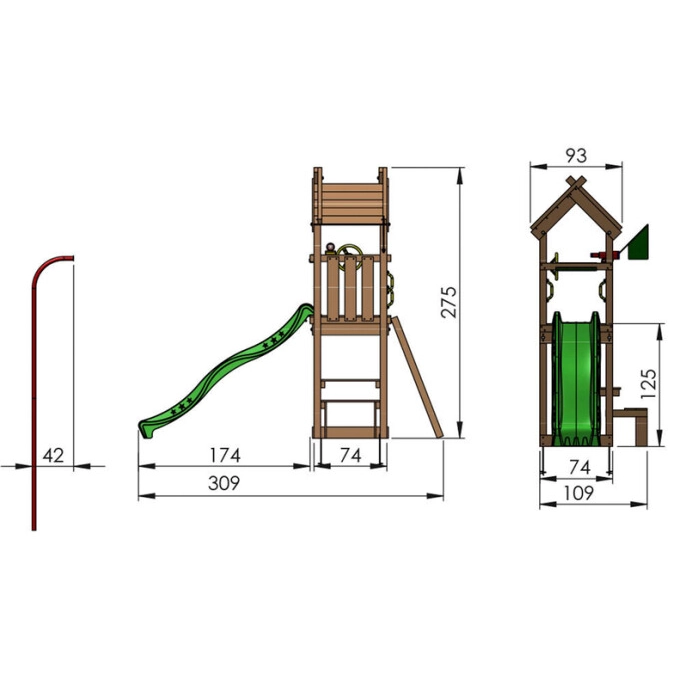Jungle Totem kommer med två olika konfigurationer, där en modell inkluderar en lekbutik med markis och en slitstark gunga med polyesterrep för extra variation i leken. Oavsett vilken variant du väljer blir den en spännande och säker plats för barnen att utforska och ha roligt på.