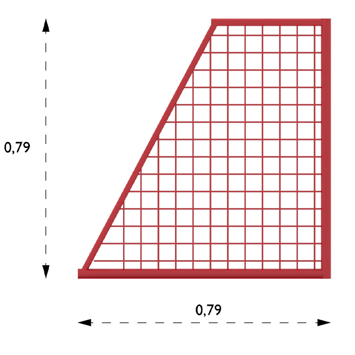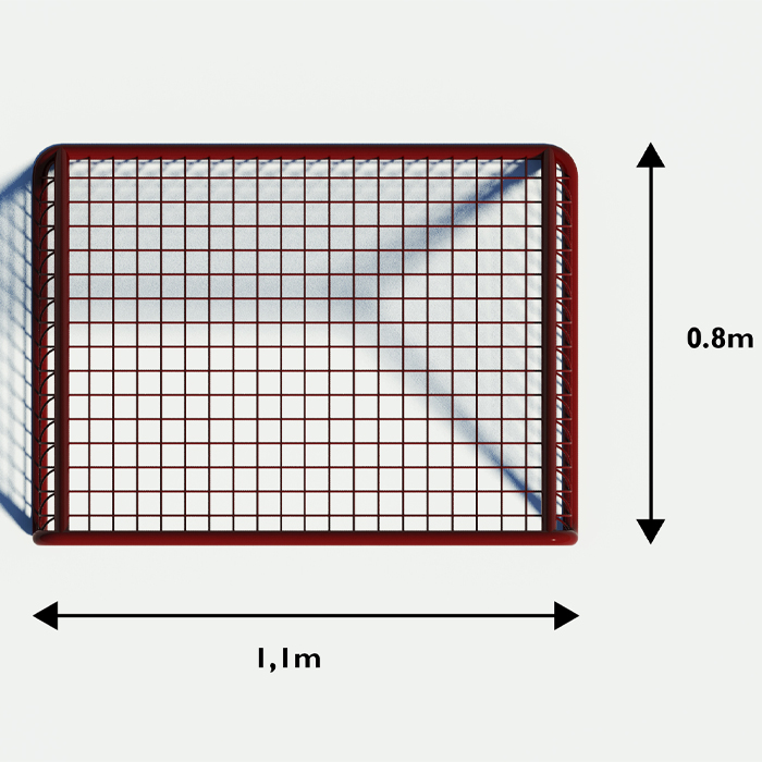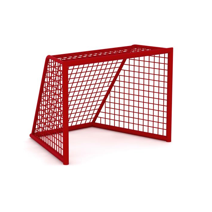 Fristående modell tillverkade av 32 och 22 mm rödlackerade stålrör med väl rundade hörn. Nät av varmförzinkat stålnät.