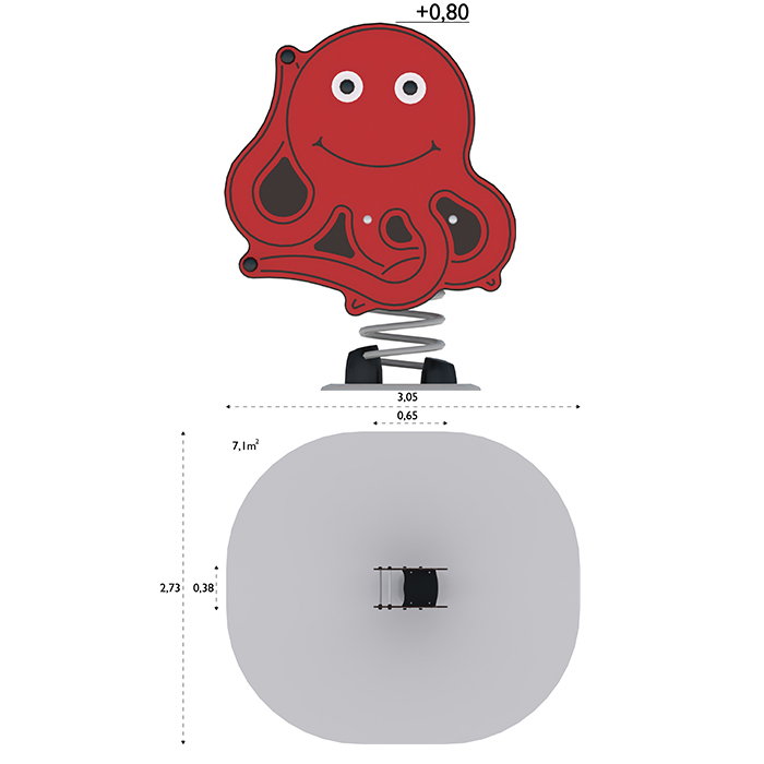 Denna klassiska fjädergunga utformad som en bläckfisk ger barnen stor glädje samtidigt som de tränar upp balansen och motoriken. Fjädergungor är alltid ett uppskattad inslag på lekplatsen. Gungar är utrustad med bra handtag och fotstöd för trygg gungning.