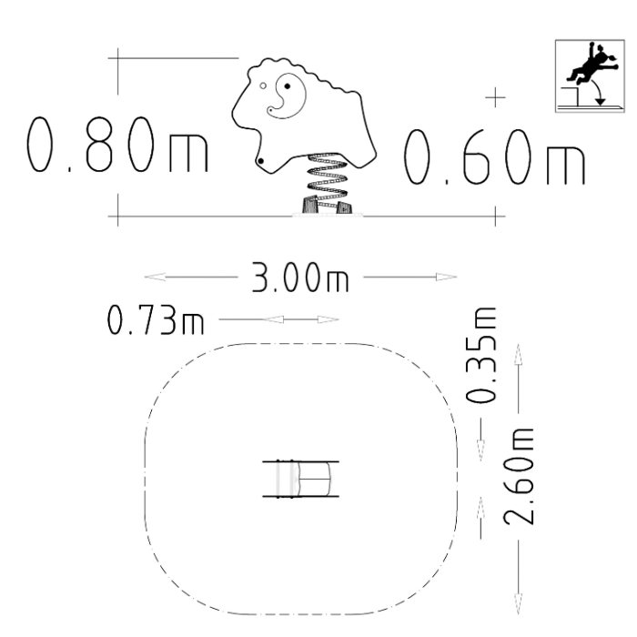 Uppskatad fjädergunga som är utformat som en får, finns i både vitt och grått utförande. Fjäderleken är en klassiker som fungerar på många ställen, den kan spela en stor roll i temaleken och kan med sin enkla och färgstarka design, uppmuntra till kreativa lekar och sagoberättande. Bra handtag och fotstöd för trygg gungning.