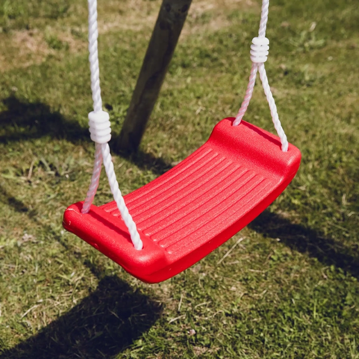 Låt barnens lekglädje ta fart med denna klassiska gunga i en pigg röd färg. Gungan är tillverkad i tålig plast och är utrustad med ett justerbart rep samt robusta upphängningsbeslag i metall som är plastbelagda för extra hållbarhet.