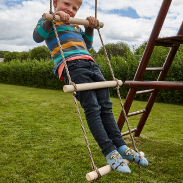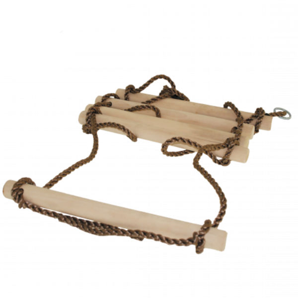 Denna repstege är tillverkad av trä och PE-rep. Repstegen monteras i två upphäng och sätts fast i marken t.ex. genom att använda 2 st. jordankare eller likande.