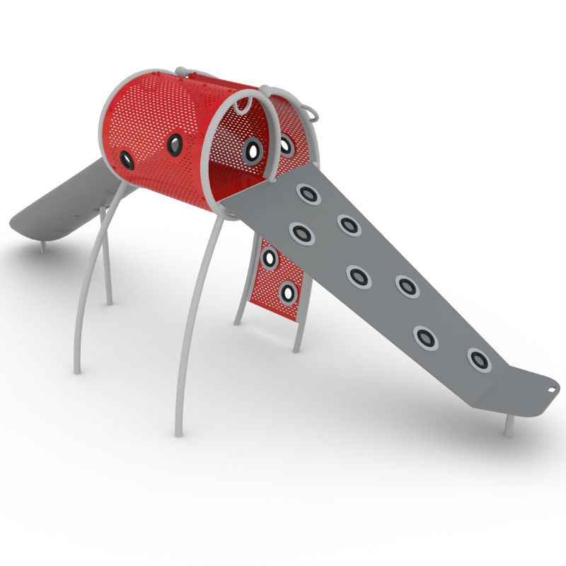 En spännande rutschkana för offentligt utemiljöer där man klättrar upp via en trappliknande klätterväg. Climber är både till form och med sina redskap ett roligt tillskott på lekplatsen, med klätterväggarna utmanar man barnen att utveckla både motorik och fysik.