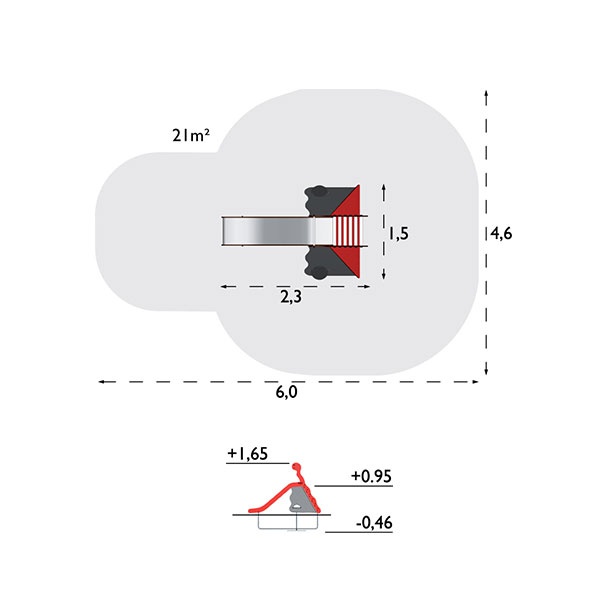 Rutschbanan är tillverkat för att klara tuffa tag i den offentliga miljön. Förankras enkelt genom nedgrävning.