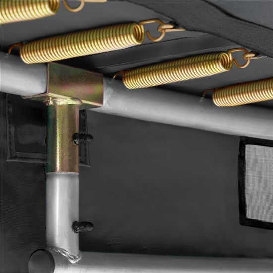 Tack vare en robust konstruktion vilket säkerställer en solid bas och är av helgalvaniserad; både invändigt och utvändigt. Då studsmattan bara sticker upp 21,5 cm över marken har barn tillgång till studsmattan säkert och enkelt tack vare det låga steget.