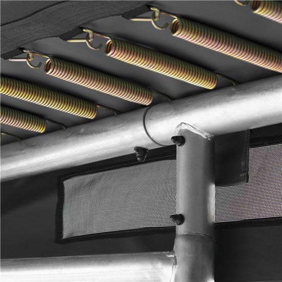 Tack vare en robust konstruktion vilket säkerställer en solid bas och är av helgalvaniserad; både invändigt och utvändigt. Då studsmattan bara sticker upp 21,5 cm över marken har barn tillgång till studsmattan säkert och enkelt tack vare det låga steget.