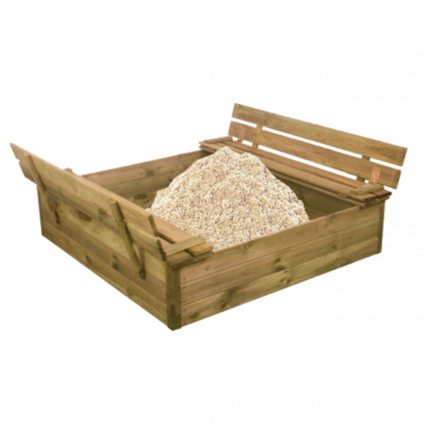 Sandlådan är populär bland alla barn och ger många timmars rolig och fantasifull lek i trädgården. Sandlådan är tillverkad i tryckimpregnerad furu och med integrerad bänk, som fungerar som lock när den läggs ner.