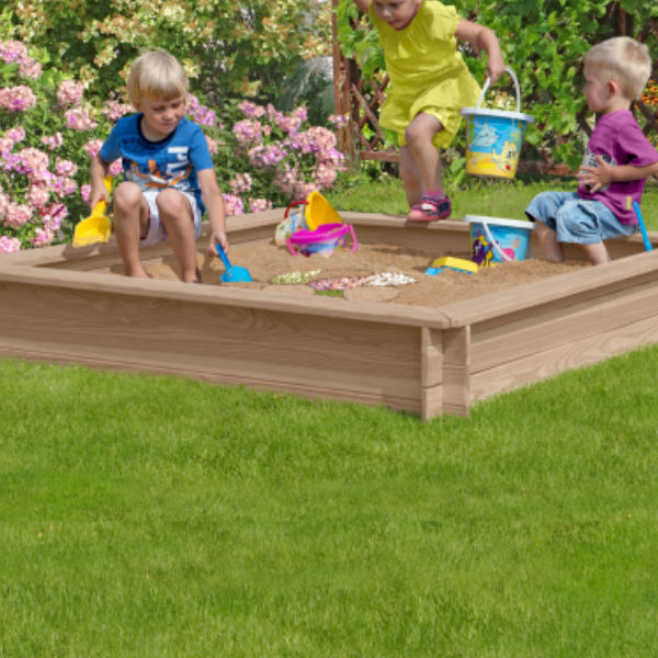 Stor härlig sandlåda tillverkad av lärkträ vilket gör att den får ett snyggt utseende. I sandlådan finns det gott om plats, så att flera barn kan leka samtidigt.