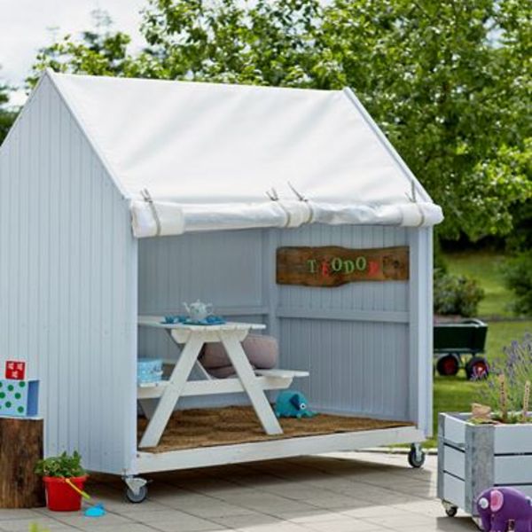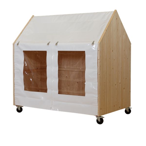 Shelter på hjul är ett litet vindskydd tillverkat obehandlat trä FSC Furu/Gran. Detta lilla vindskydd lämpar sig perfekt i den privata trädgården som ett substitut för lekstugan.
