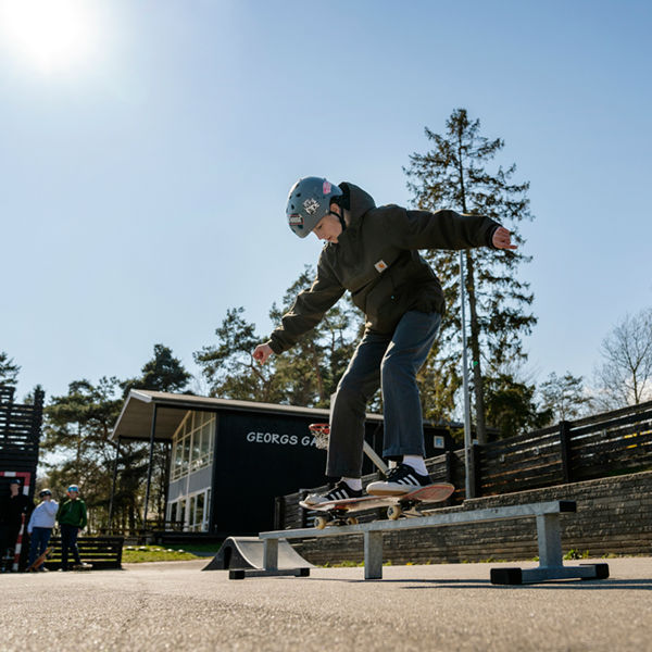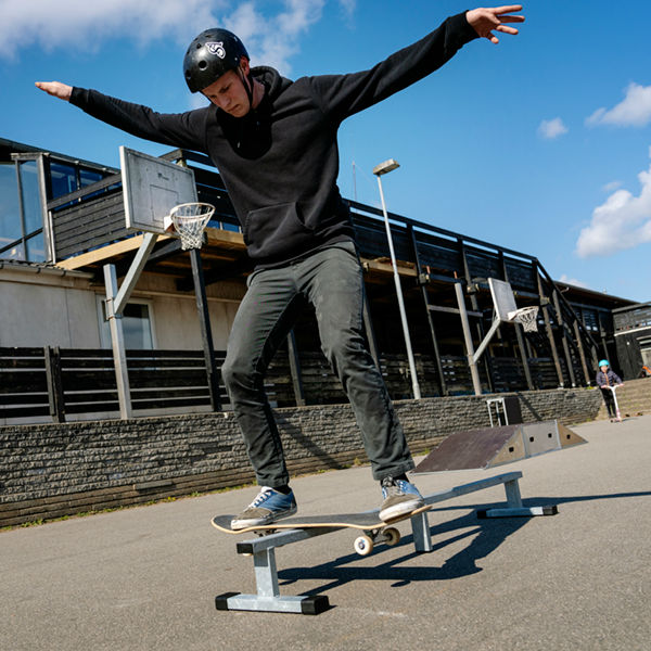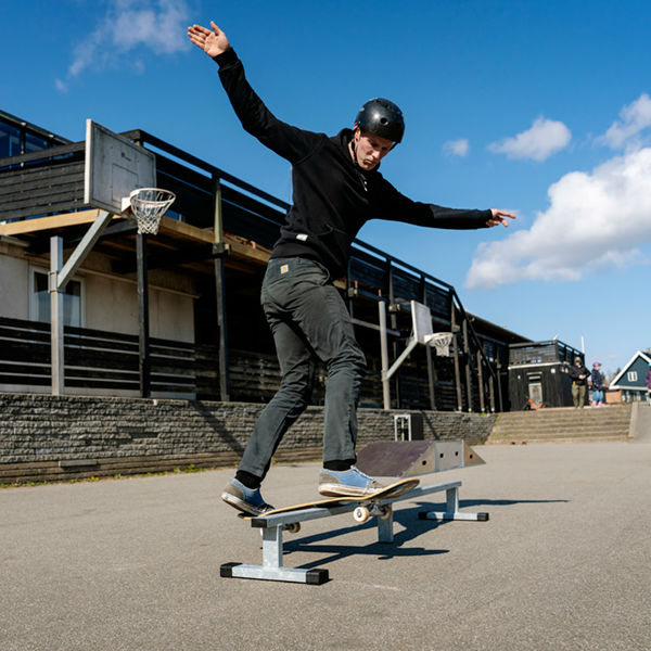 Ett rakt skaterail med måtten 183 x 6 x 18 cm.