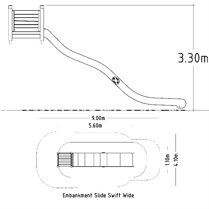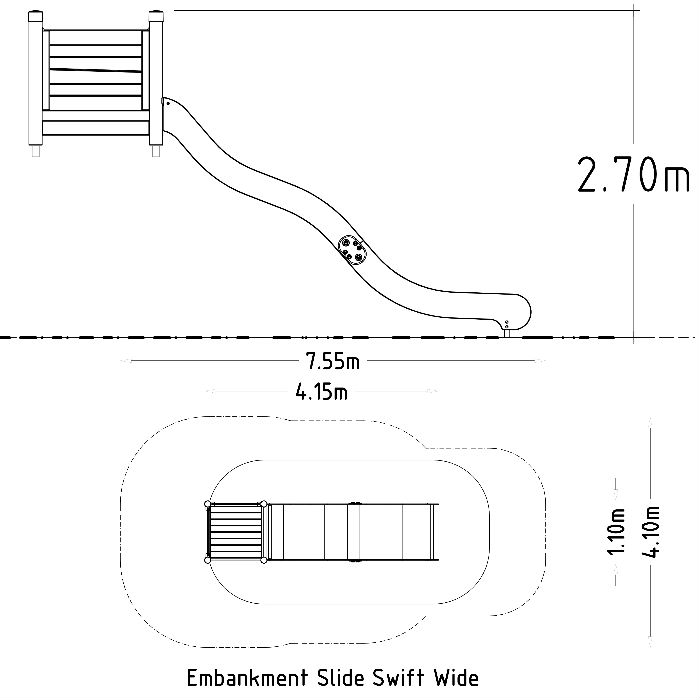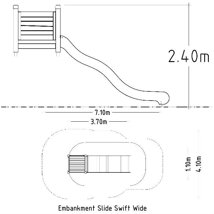 En bred släntrutschkana som levt kvar på lekplatser under en lång tid, finns i modeller för åkhöjd/plattformshöjd på 1,5 m, 1,8 m & 2,4 m och monteras genom nedgrävning. Med en bredd på 1000 mm gör att två barn kan åka ner för rutchkanan samtidigt. Montering av rutschkanan sker på en kulle för att på ett snyggt sätt smälta in i naturen, detta medför att barnen får en utmaning att klättra upp för kullen eller om man bygger en trappa upp (ingår ej).