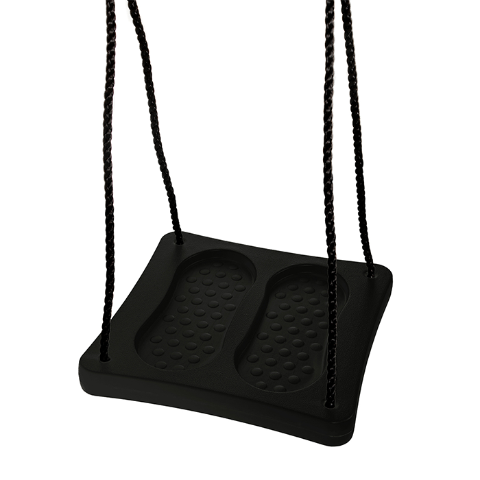 en stågunga tillverkad av plast med stora fotavtryck för att öka stabiliteten där repen är justerbara.