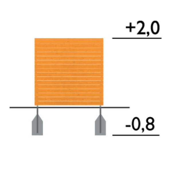 Miljöanpassat tvåsidigt bollplank i 2 m sektioner som är byggbara på längden.