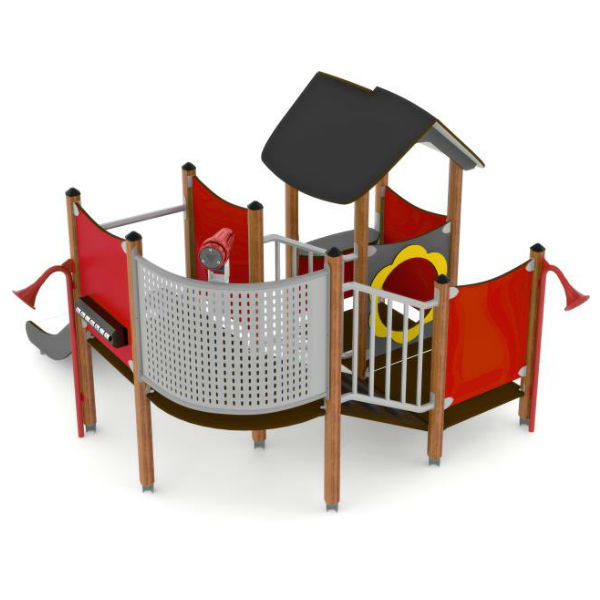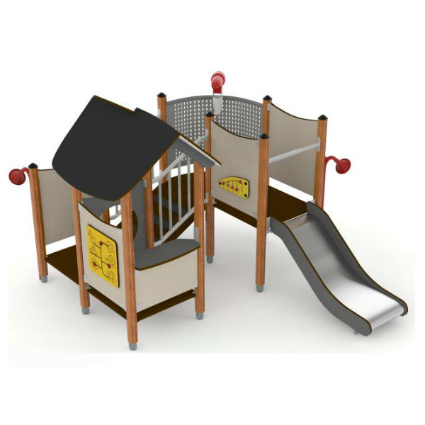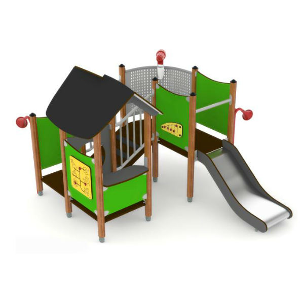 Försedd med både ruschbana, plastteleskop, talrör, sorteringsspel, butikslucka, parspel och lekskärm gör att lekställningen till det ultimata platsen för leksugna barn.