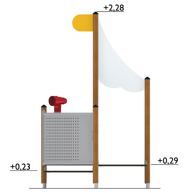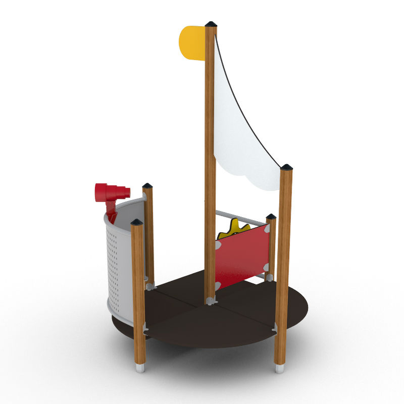 En enkel lekställning med båtinspiration utrustad med bland annat en ratt, kikare och mast.