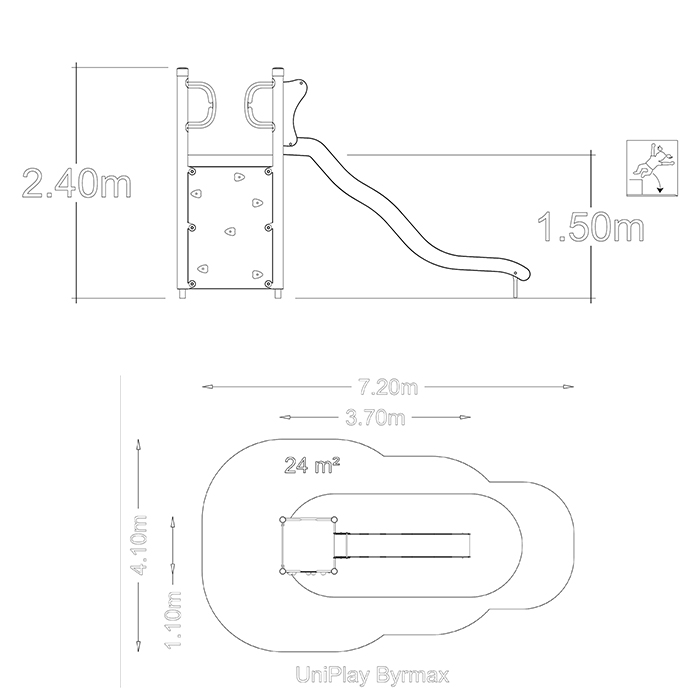 Uniplay Byrmax är en klätterställning kombinerad med rutschlek. En komplett lekställning helt enkelt. Rutschbanan är tillverkade av 1,0 mm mönstervalsad rostfri plåt som är ljuddämpad under hela åkytan av 3 mm oljehärdad masonit. Sidorna är tillverkade av HPL. Klätterväggen är tillverkad i fenolfilmbelagd plywood med grepp i syntetmaterial. Fästbeslag i elförzinkad och pulverlackerad stålplåt. Uniplay Byrmax har stolpar och rundbalkar är av träskyddsbehandlat limträ med en diameter på 110 mm, för bästa stabilitet och ytfinish.