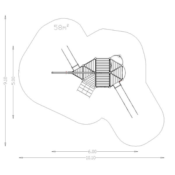 Uniplay Viking är tillverkad av kraftig HPL som står emot väder och vind. Stolpar och rundbalkar är av träskyddsbehandlat limträ.
