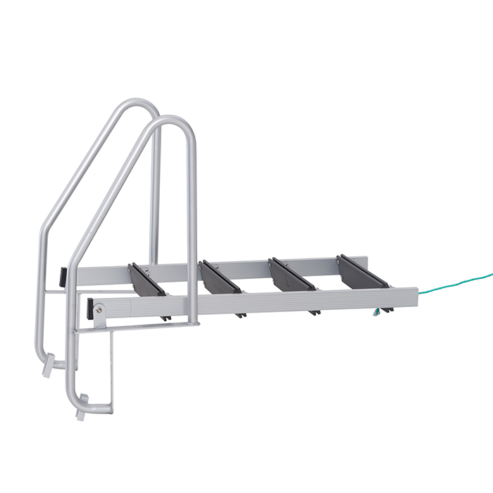 Stegen fälls enkelt upp med hjälp av repet när den inte används. Vilket håller den fri från vattnet och minskar onödigt slitage.