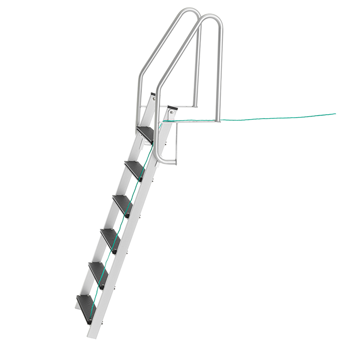 Uppfällningsfunktionen gör att stegen enkelt dras upp ur vattnet när den inte behövs, vilket förlänger livslängden.