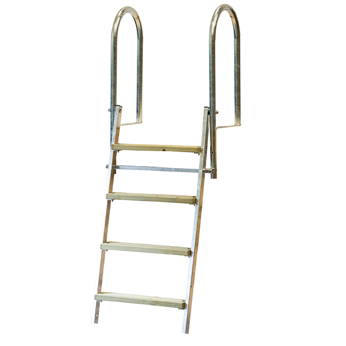 Siljan är en svensktillverkad fällbar bryggstege tillverkad av en stålstomme och steg av impregnerat furu. Tack vare den fällbara funktionen är den lätt att förvara under t.ex. vintersäsongen då den fortfarande kan vara monterad på bryggan.