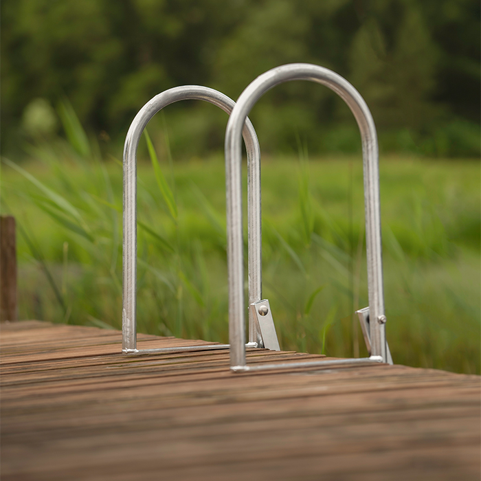 Stegen är utformad av rundade handledare vilket gör att ned- och uppstigning känns smidigt och enkel. Avstånd mellan handledare 528 mm.