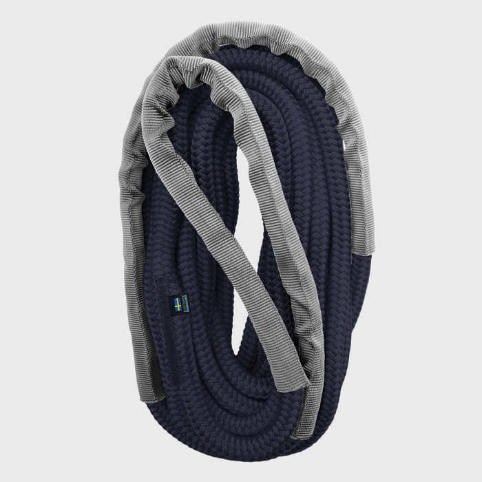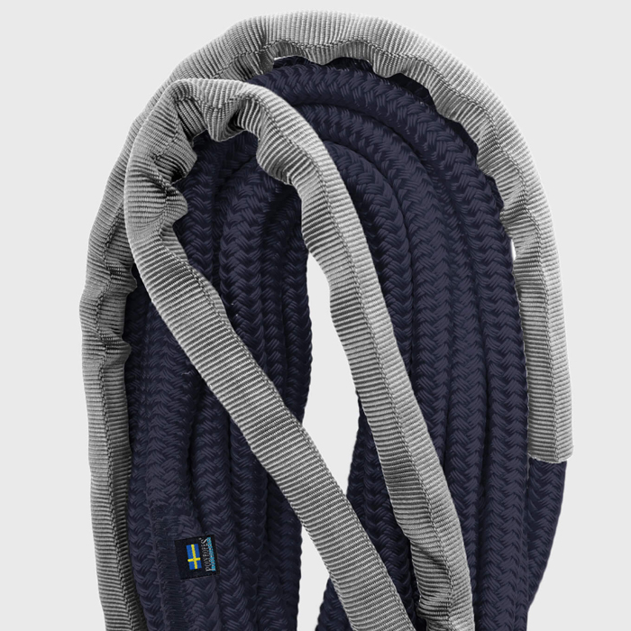 En marinblå förtöjningstamp med en diameter på 16 mm anpassad för båtar på 6 - 9 ton, finns i längderna tre, sex och tio meter.
