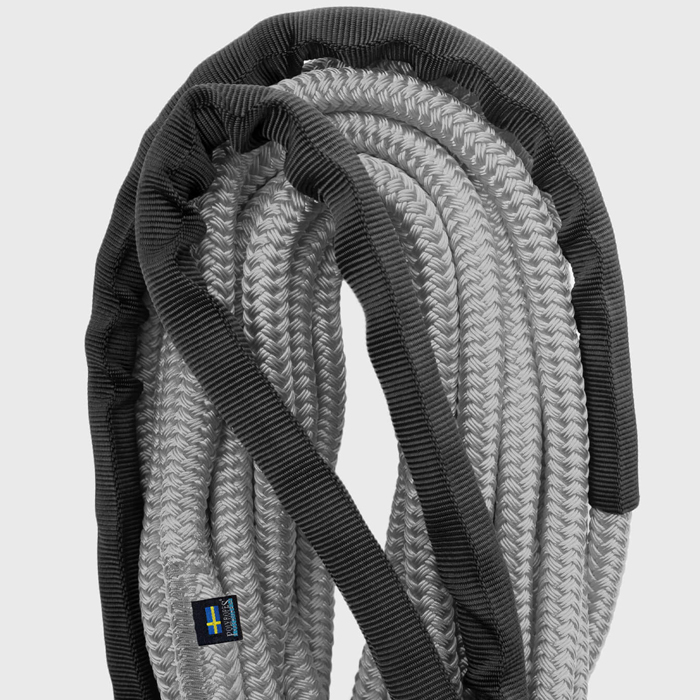 Grå förtöjningstamp av premiumkvalitét med en diameter på 12 mm är den anpassad för 1-2 tons båtar, finns i längderna tre, sex och tio meter. Tampen har en elastisk kärna och ett flätat hölje tillverkat av 100% polyestersilke. Förtöjningslinan är även UV-behandlad för lång livslängd utomhus.