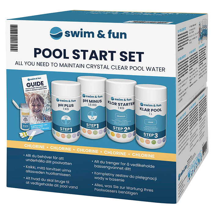 Genom att använda ett Pool Start-Set kan du vara säker på att få en optimal start på badsäsongen, Setet innehåller klorstarter för att desinficera vattnet samt testremsor för enkel övervakning av pH- och klornivåerna. För att justera pH-nivån inkluderas även pH-Plus och pH-Minus, medan KlarPool används för att förebygga beläggningar. Setet innehåller alla nödvändiga vårdprodukter för att hålla poolvattnet rent och inbjudande, tillsammans med en tydlig och informativ guide.
