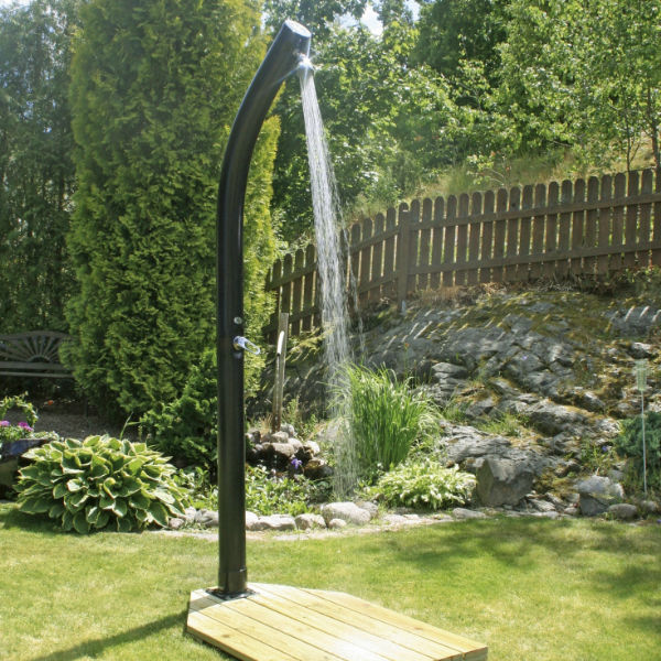 Uteduschen Sunny är häftig och prisvärd med soluppvärmd varmvattensberedare som rymmer 20 liter.