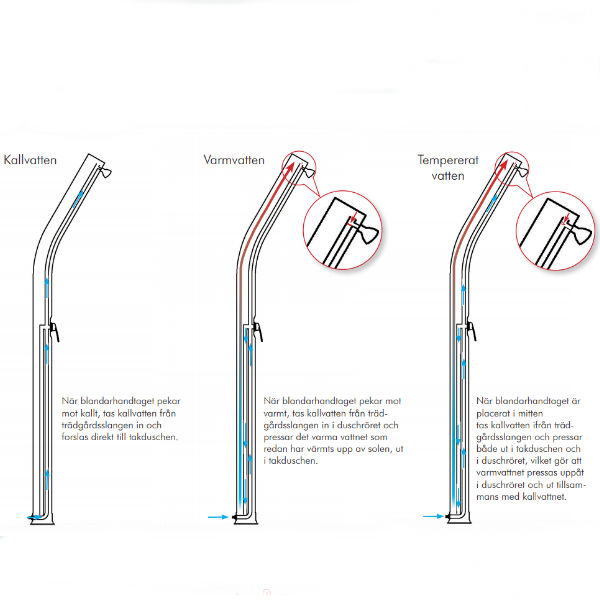 Sunny 20L har ett inbyggt blandningssystem så att du enkelt kan temperera ditt duschvatten med den inbyggda blandaren.