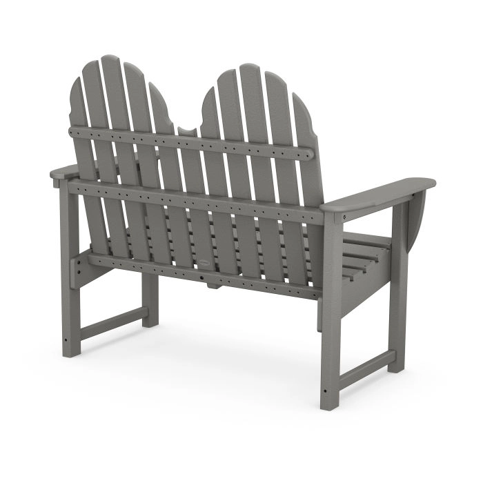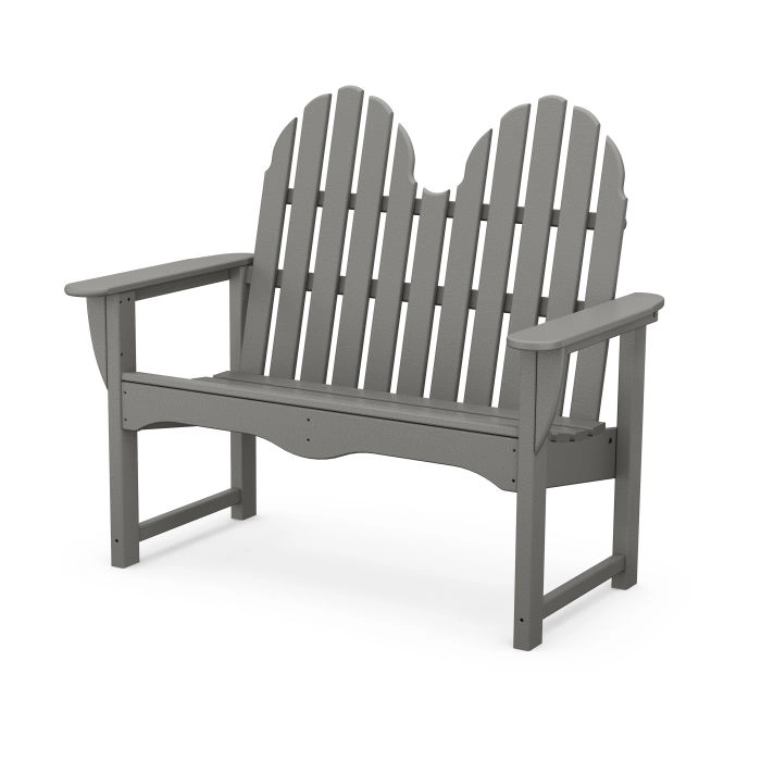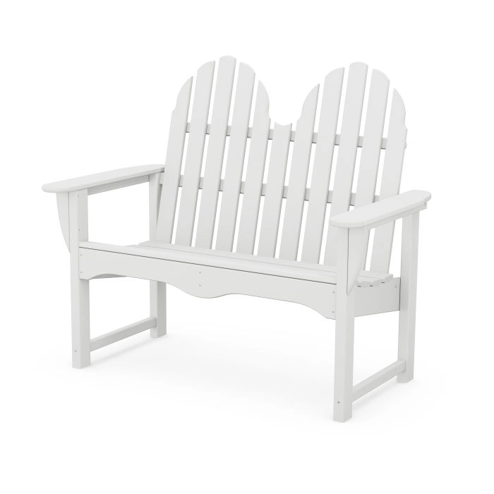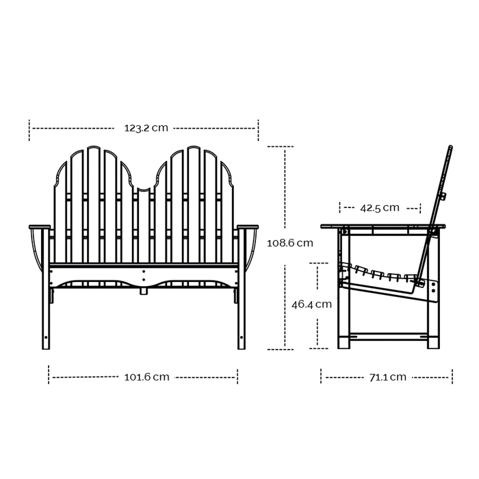 Fristående bänk med plats för två personer i det återvunna materialet Polywood, finns i färgerna: vit, grå och svart. Bänken är lätt att underhålla (behövs endast tvättas av med vatten) och kan stå ute året om.