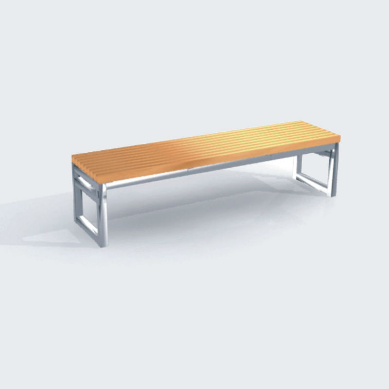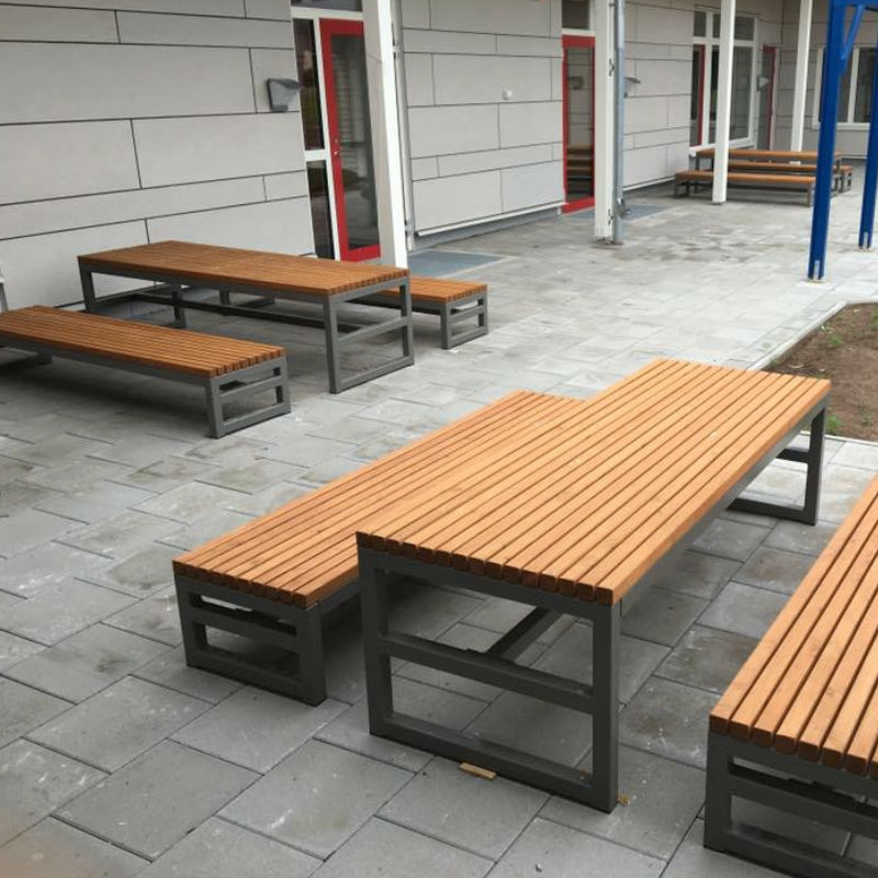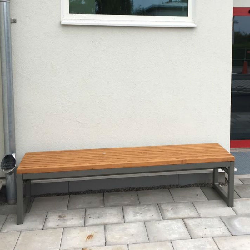 Modern bänk i Kyoto-serien, framtaget av underhållsfritt träslag och pulverlackerat underrede.