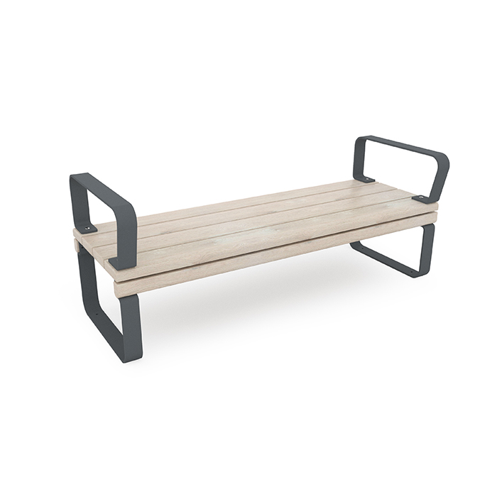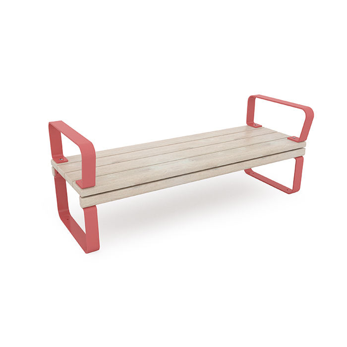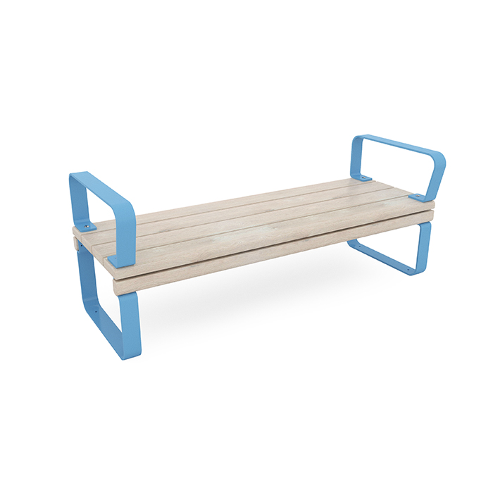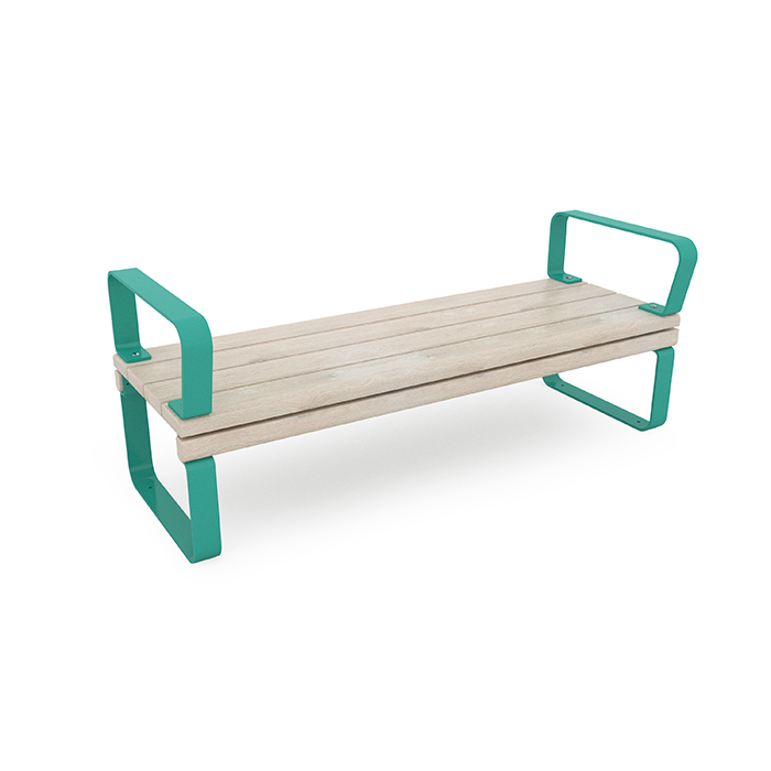 Alla ska lätt kunna resa och sätta sig på en bänk i den offentliga miljön, därför är denna bänk utrustad med gedigna armstöd, stativen finns i fem olika kulörer för att snyggt kunna passa in i utomhusmiljön.