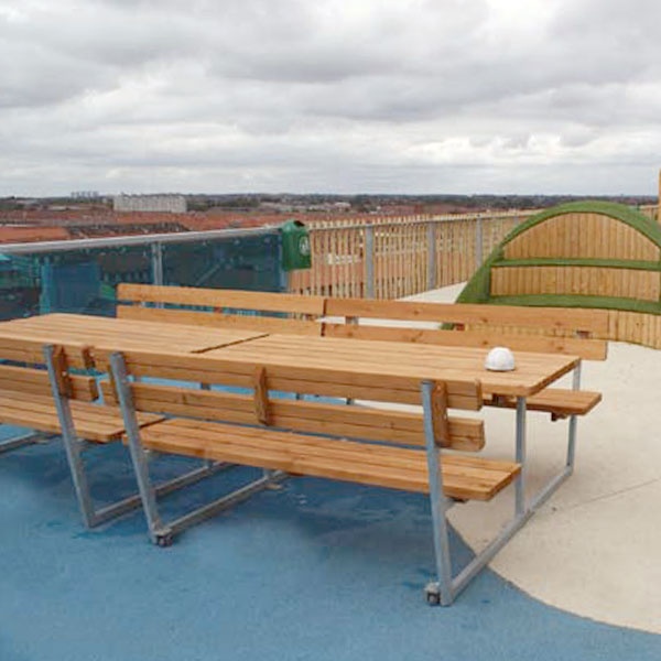 Bänkbord Idun med ryggstöd passar både vuxna och barn, perfekt för en social stund eller en fika. Bordet är tillverkat i högkvalitativt lärkträ och är därför extra hållbart. Bänkbordet har snygg design och passar in i många olika miljöer.