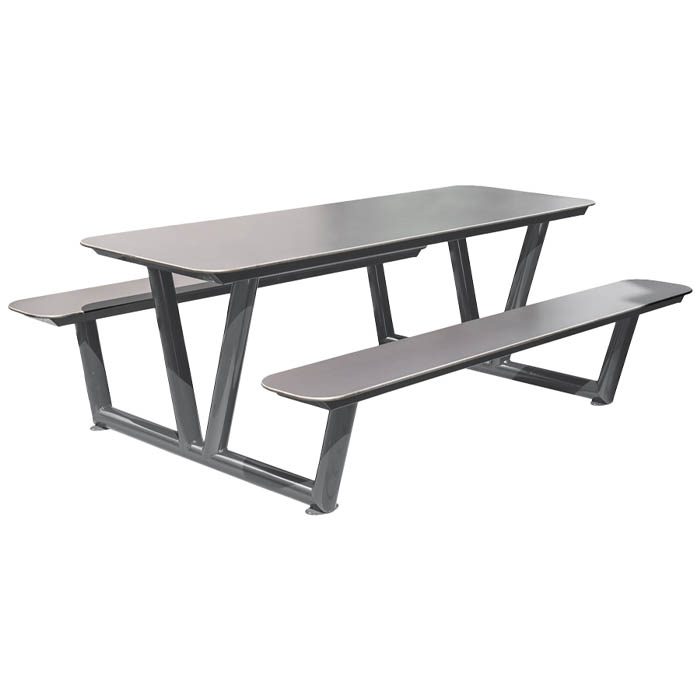 Robust, vandalsäkert, tillgänglighetsanpassat och underhållsfritt bänkbord i stilren design. Bänkbordet består av en kraftig rostbehandlad benställning som är pulverlackerad i grå RAL 9006. Den stilrena designen tillsammans med den robusta kvaliteten gör att bänkbordet passar utmärkt på skolgården, institutioner, park- eller stadsmiljö.