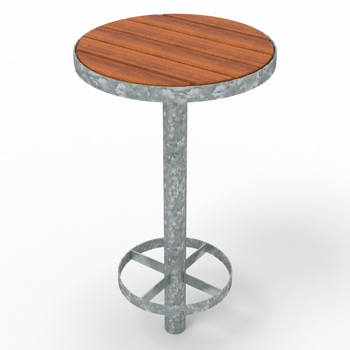 Ett högt bord på med en bordskiva på 1100 mm ovan mark, perfekt för de snabba mötena i parker och på torg. Bordet är utrustad med ett stöd som man lätt kan vila fötterna på om man sitter på pallarna i samma serie. Barbordets bordsskiva mäter 600 mm. Montera bordet enkelt via nedgjutning eller genom att bulta fast det ovan mark, välj rätt modell i rullistan innan beställning.