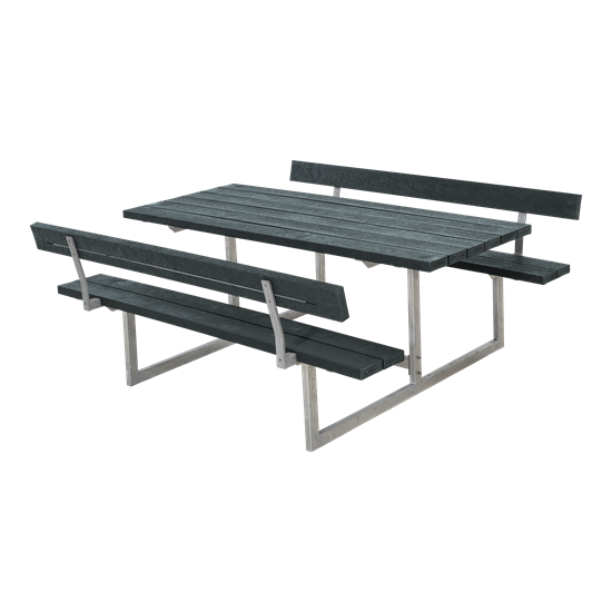 Picknickbord Basic är ett bord som är i stort sett helt underhållsfritt. Underredet är tillverkat varmgalvaniserat stål (30×50 mm) med brädor av ReTex vilket är en blandning av 100 % återvunnen textil / plast.
