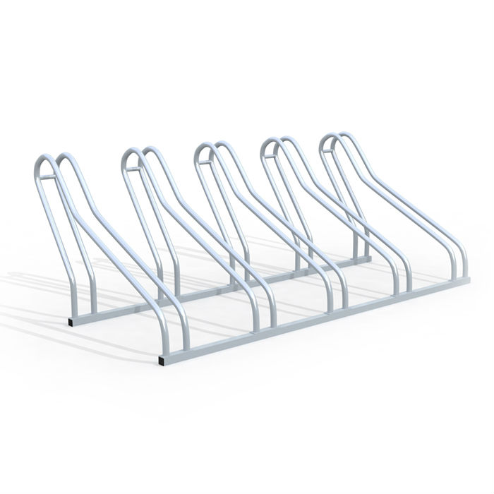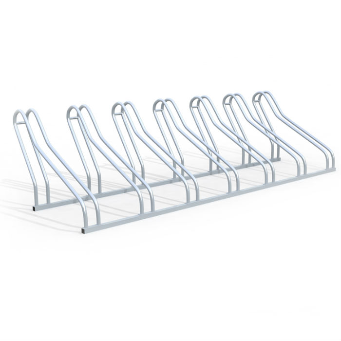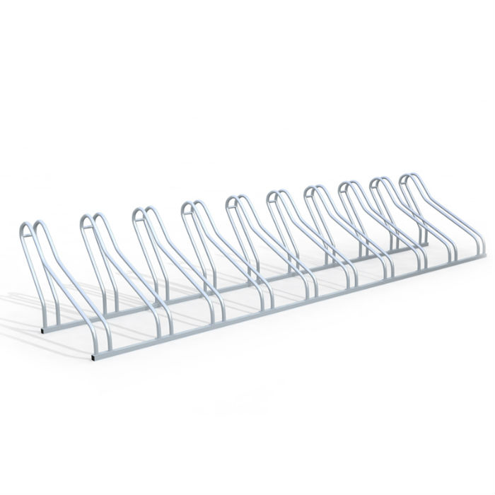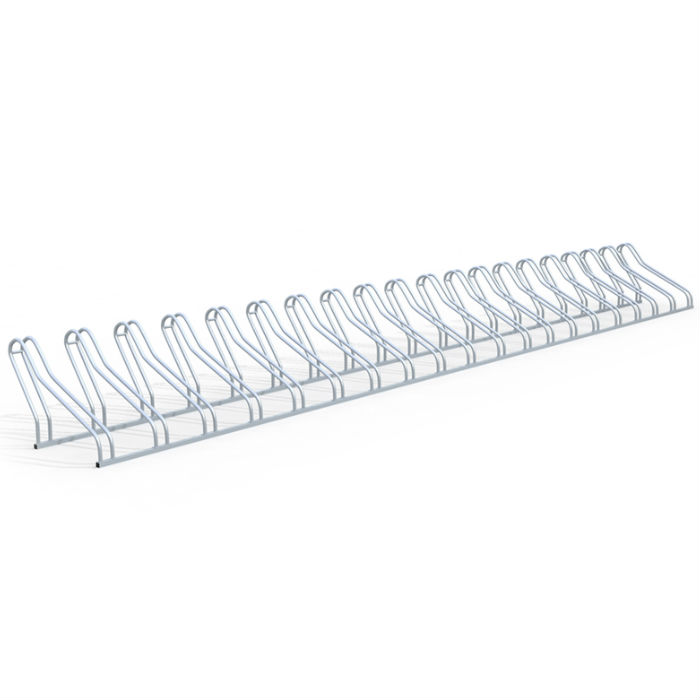 Enkelt och smidigt cykelställ i varmförzinkat stål som placeras direkt på marken, finns i modeller från 3 till 20 platser.