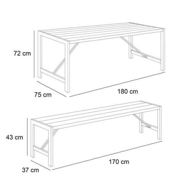 Denna grupp består av ett trädgårdsbord och två trädgårdsbänkar i H-form, tillverkat av 100 % FSC®-certifierat furu som grundmålats svart. Uppsättning har en underhållsfri och robust ram i galvaniserat stål som ger ett modernt men samtidigt mysigt utseende. Ramen är även förstärkt med ett diagonalstag för att göra det extra stabilt och hållbart.