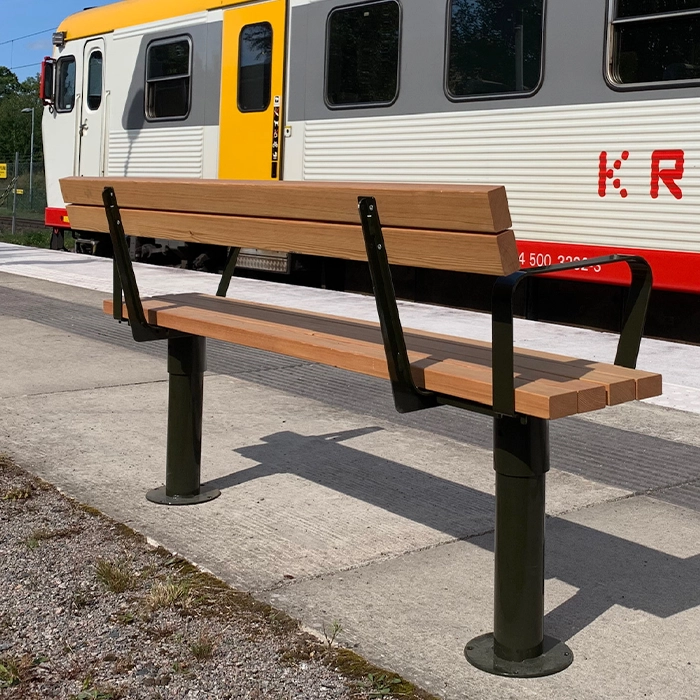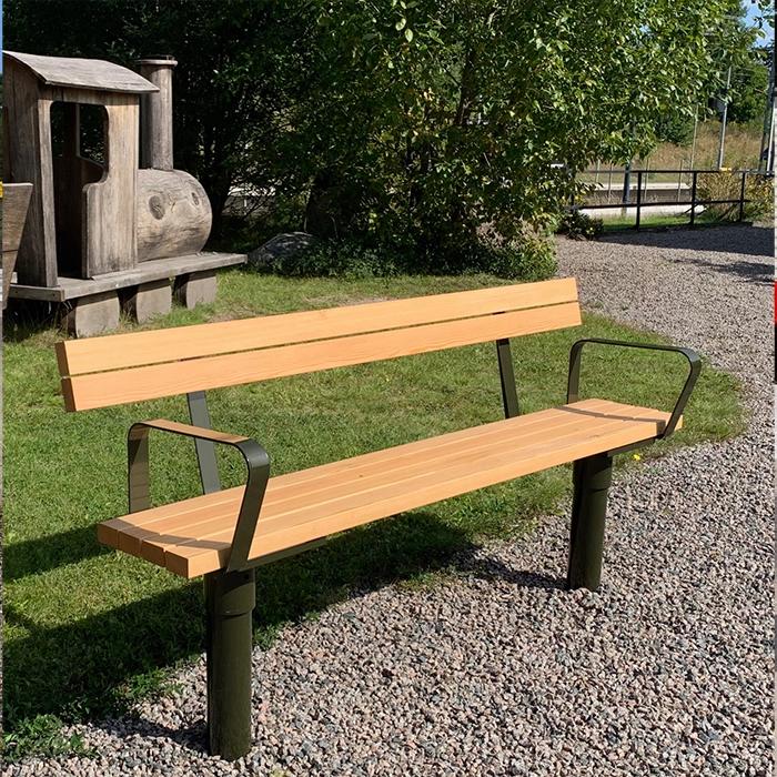 Klassisk och funktionell design för offentliga miljöer, Tillverkad i stålkonstruktion med sittyta av oljad svensk kärnfuru.