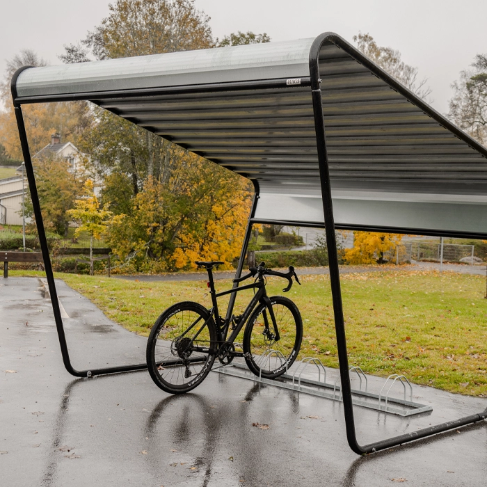 Atria är ett elegant och funktionellt cykelgarage som skyddar din cykel från regn och snö – så att du slipper sätta dig på en blöt sadel. Den industriella designen finns i helgalvaniserad utseende eller den mer eleganta finishen med svartlackerad stomme. Atria har tagits fram i ett stolt samarbete med designern Gunilla Allard.