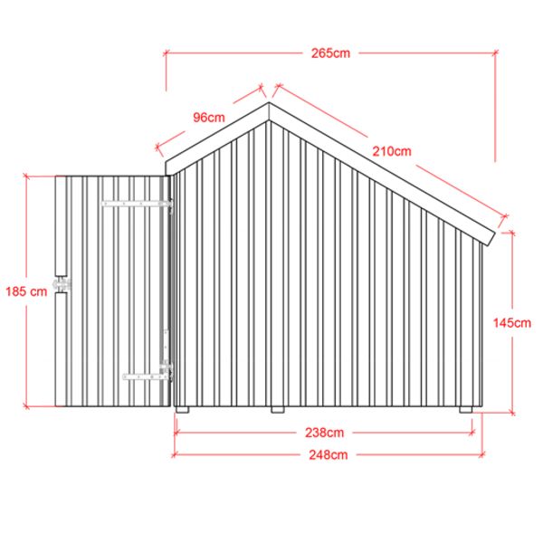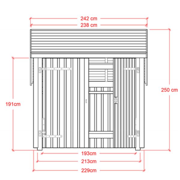 - Utvändiga mått: BxLxH 229x248x145/202/250 cm